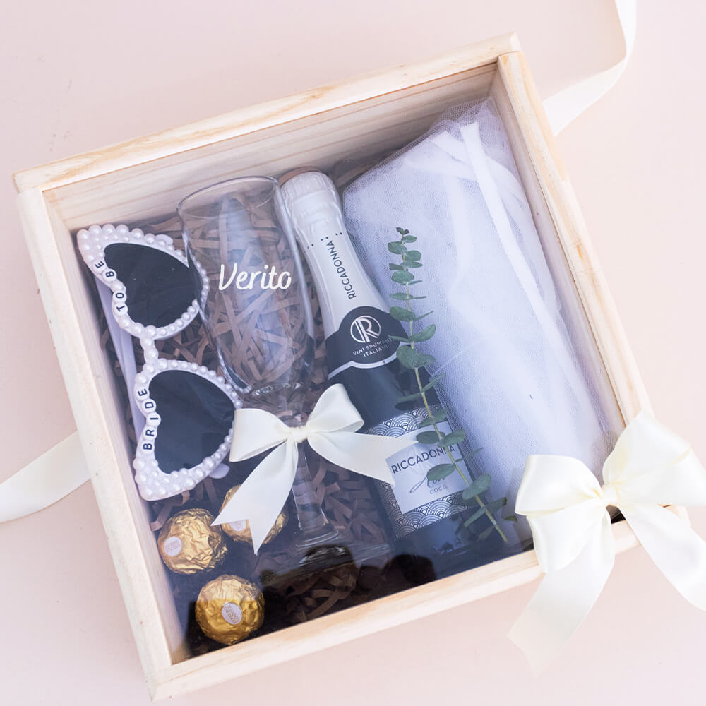 - Caja de pino premium con medida 25 x 25 cm con tapa de vidrio personalizado